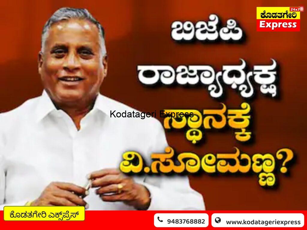 ಬಿಜೆಪಿ ರಾಜ್ಯಾಧ್ಯಕ್ಷ ಸ್ಥಾನಕ್ಕೆ ವಿ.ಸೋಮಣ್ಣ?